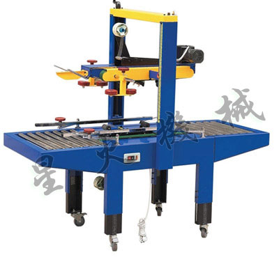 - 膠帶封箱機采用即貼膠帶封紙箱封口,經濟快速、容易調整,可一次完成上、下封箱動作,采用印字膠帶,更可提高產品形象;