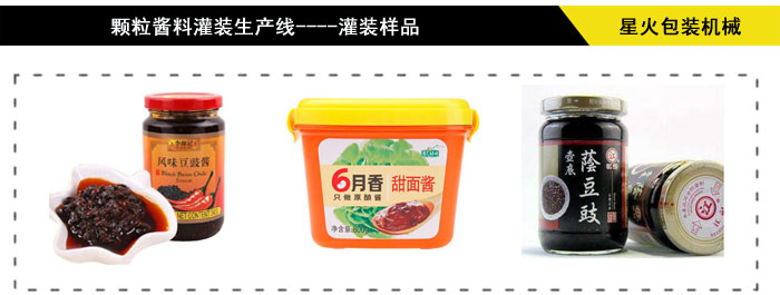 主要用于灌裝含顆粒的半流體、膏體、豆豉醬料物料的灌裝如辣椒醬、豆豉醬、火鍋料、牛肉醬、香菇醬、郫縣紅油豆瓣醬等