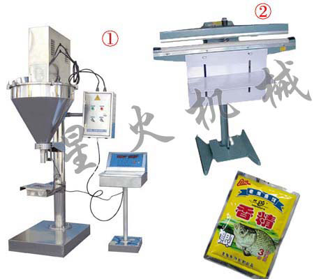 香料包裝機 ① (粉劑包裝機)具有自動定量、自動充填、自動調整計量誤差等功能,人工套袋,光電開關控制,袋口干凈,易封口,采用步進電機及電子稱量技術,包裝精度高,適用于香料、葡萄糖、奶粉、面粉、精細白沙糖、味精、調味品等粉末料狀包裝。
